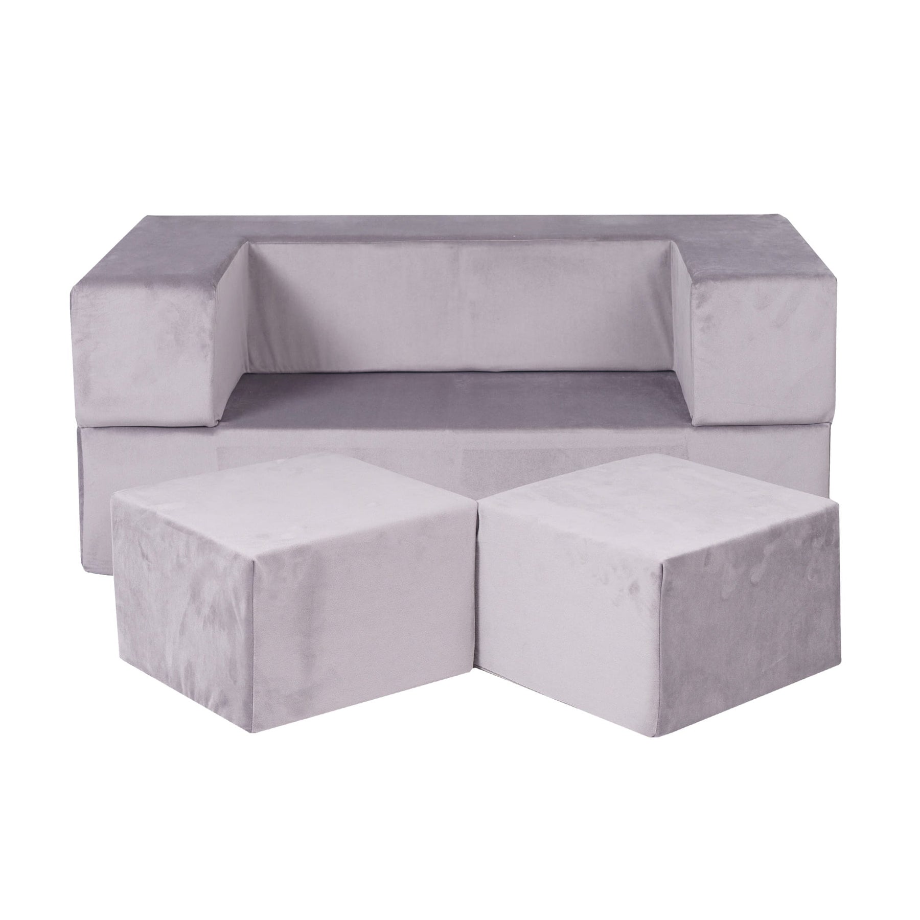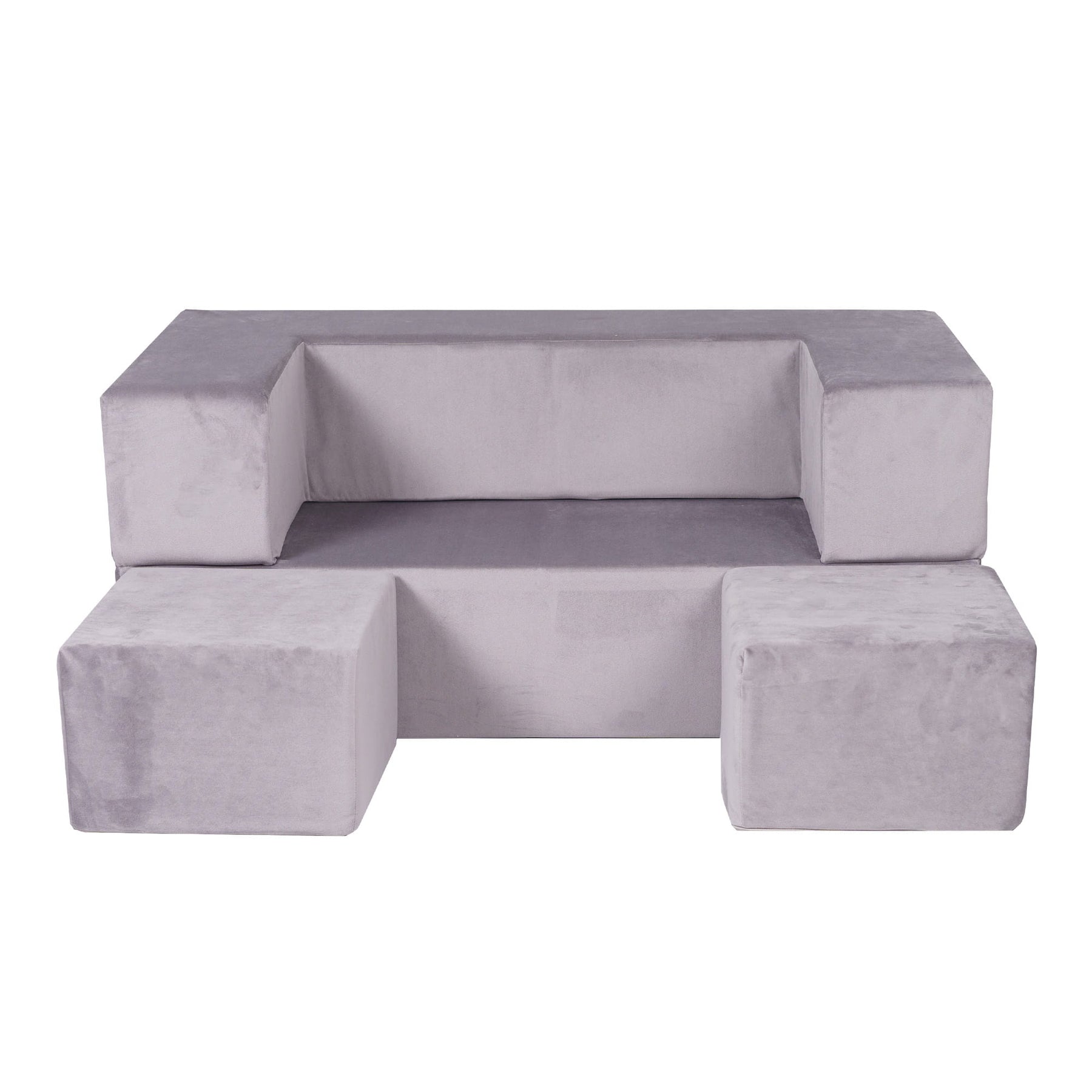 Zusätzlich sind zum Sofa noch zwei kleine Poufs dazugekommen, die beim Spielen als Stütze dienen können. Sie sind nicht nur ein zusätzliches Dekoelement, sondern auch funktionales Zubehör, das den Spaß und den Komfort beim Benutzen des Sofas steigert.